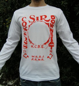 Hand Printed Red On White Longsleeve Tribute Tee honouring Sir Coxsone ‘Downbeat The Ruler’ Dodd. Jamaica’s Legendary musicologist and producer supreme.