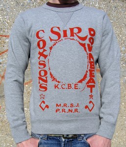 Hand Printed Red On Grey Sweatshirt. A Tribute honouring Sir Coxsone ‘Downbeat The Ruler’ Dodd. Jamaica’s Legendary musicologist and producer supreme